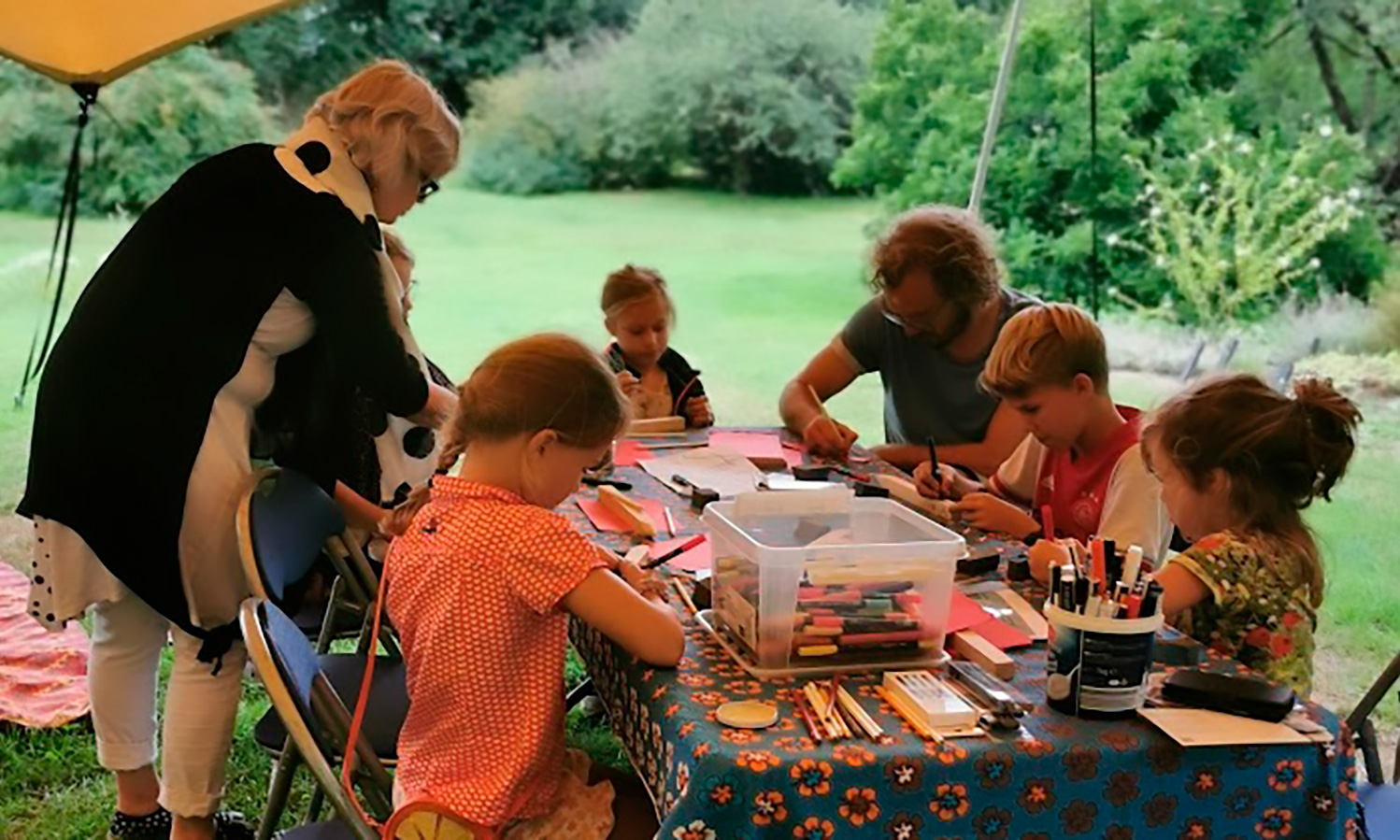 16.00 uur activiteiten zijn in de doe-tent. Daarbij wordt gebruik gemaakt van de tien al ontwikkelde doekaartjes voor Beelden op de Berg 12, maar er kan ook een Heksenpaaltje gemaakt worden.